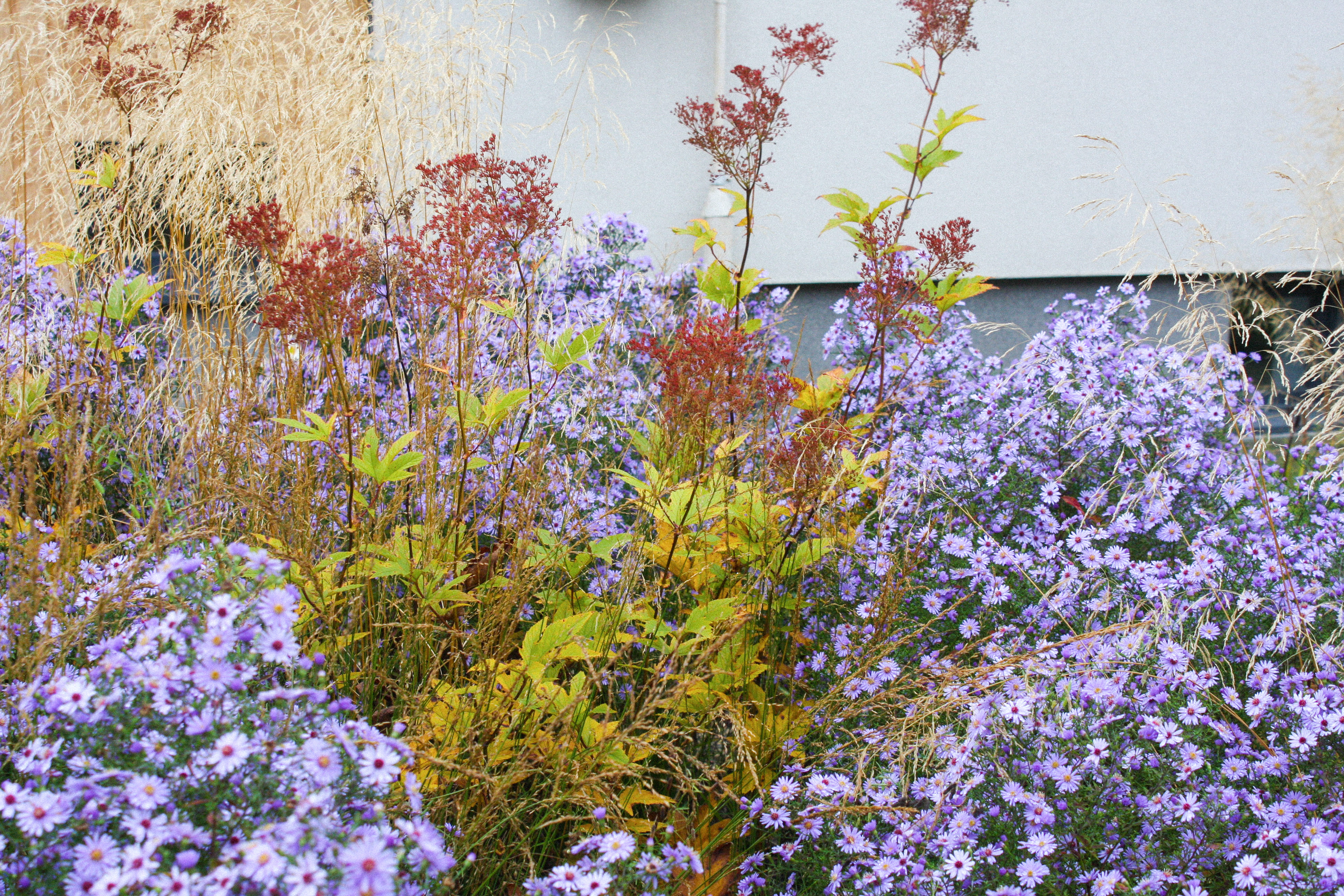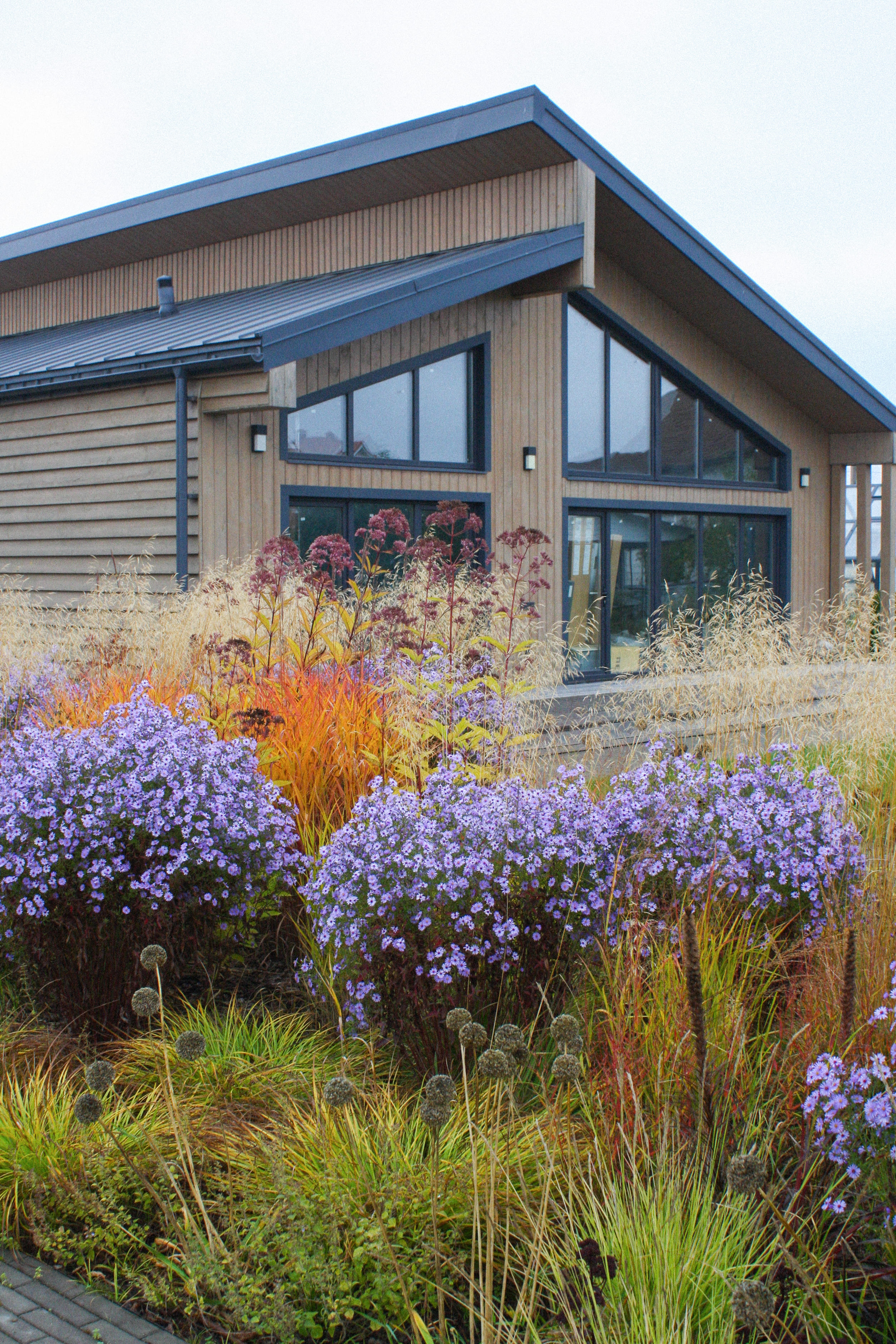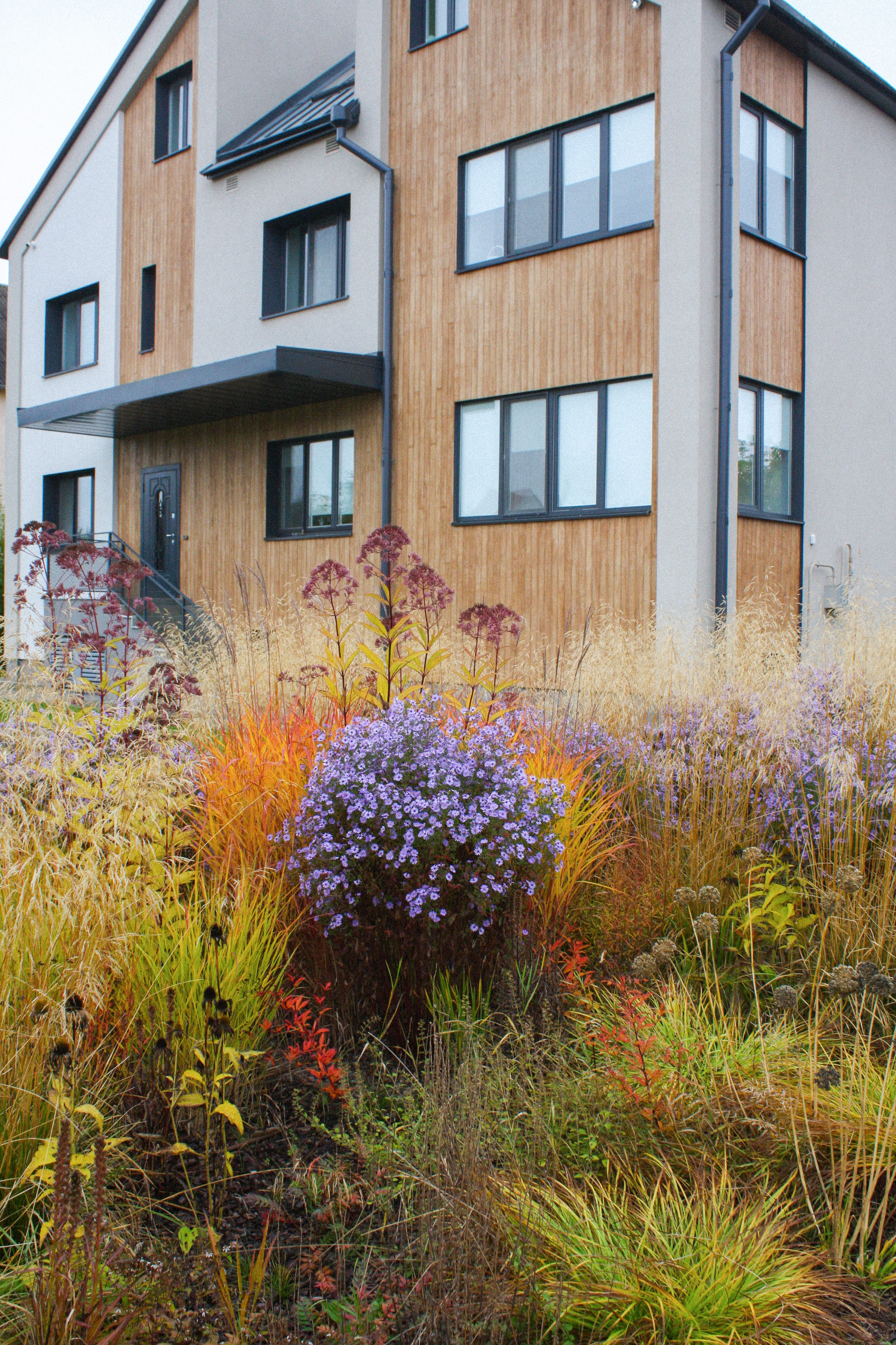 Цветник в несколько сотен квадратных метров в течении всего сезона играет разным настроением. Каждую неделю появляются новые растения и новые цвета.