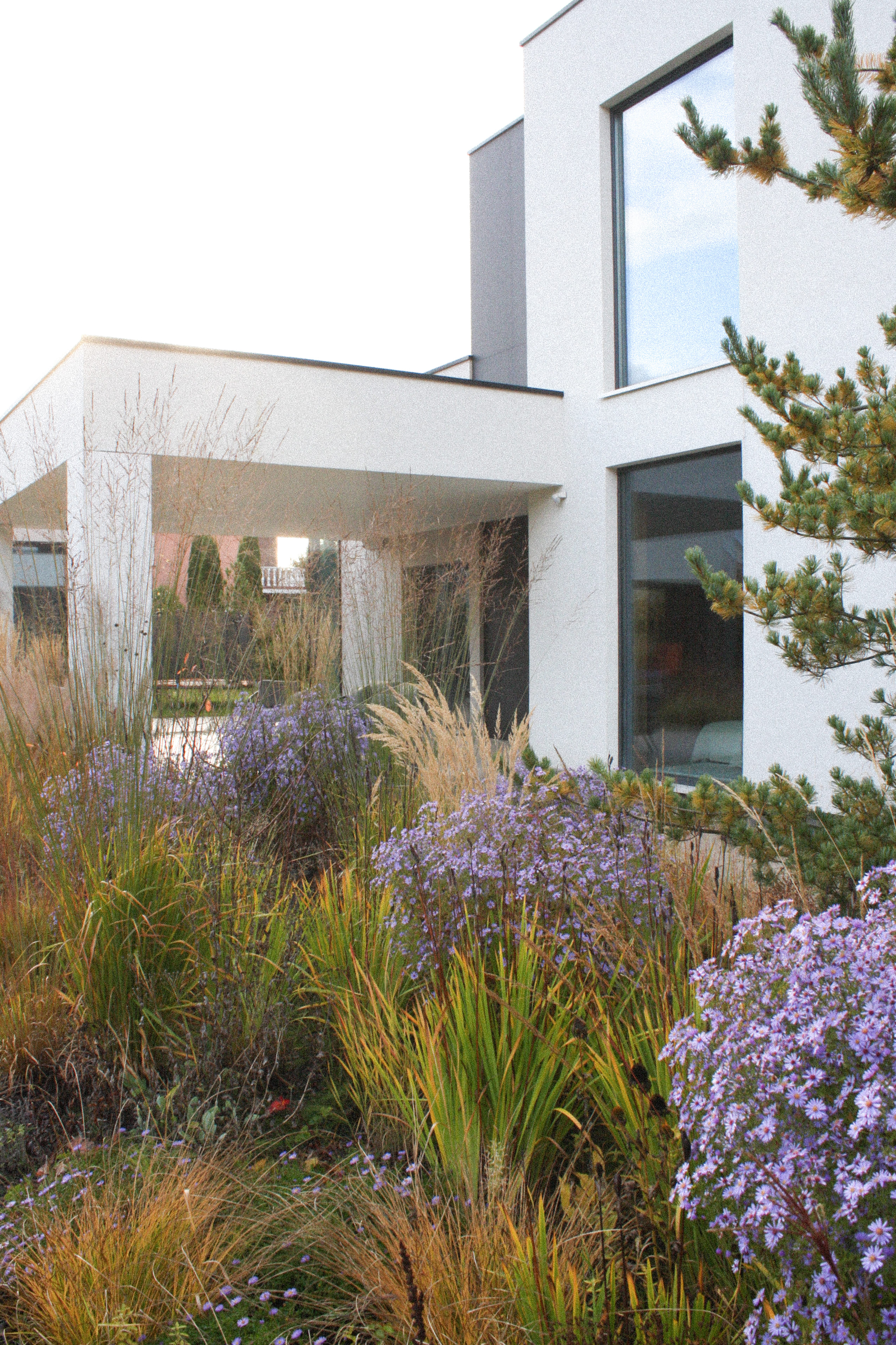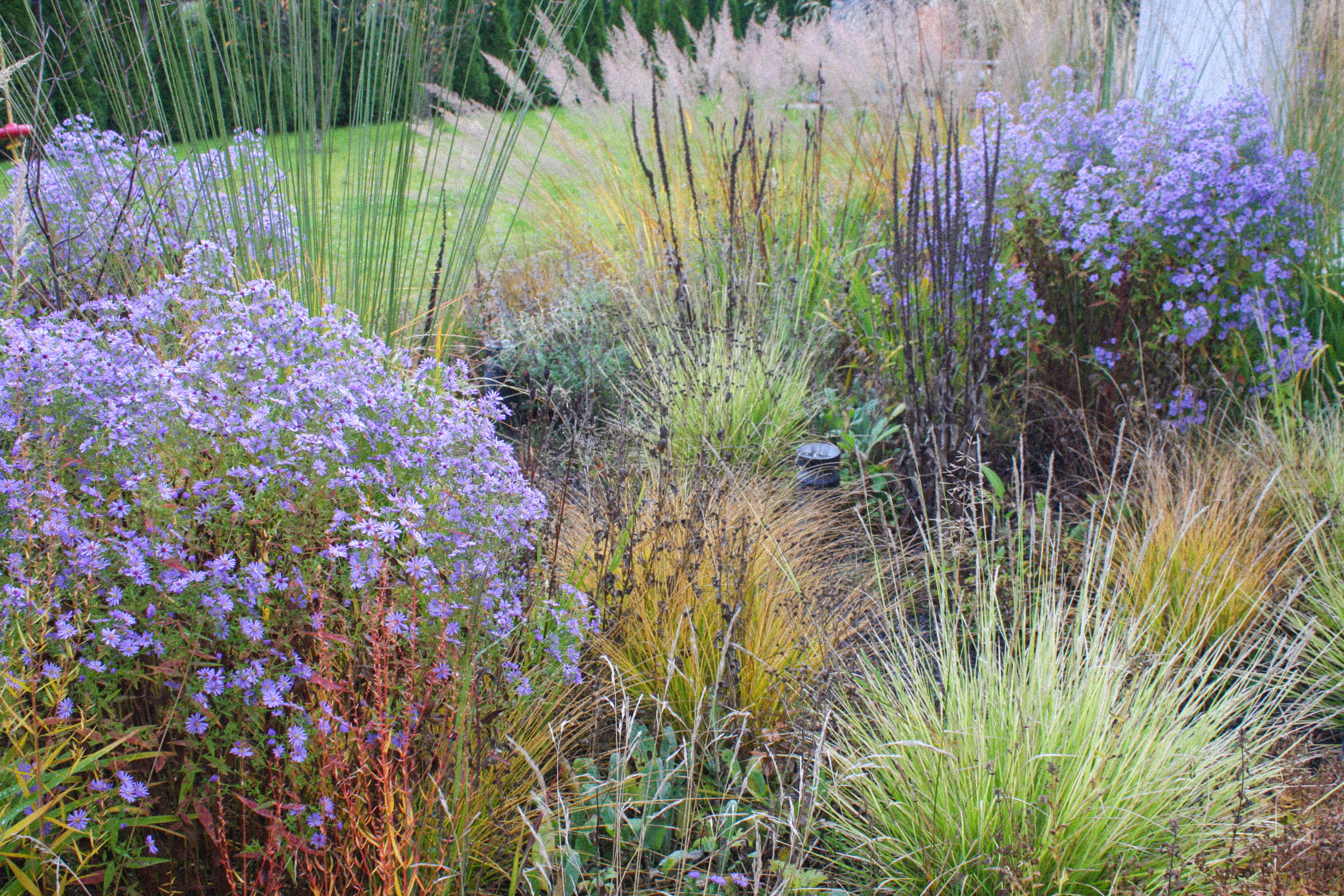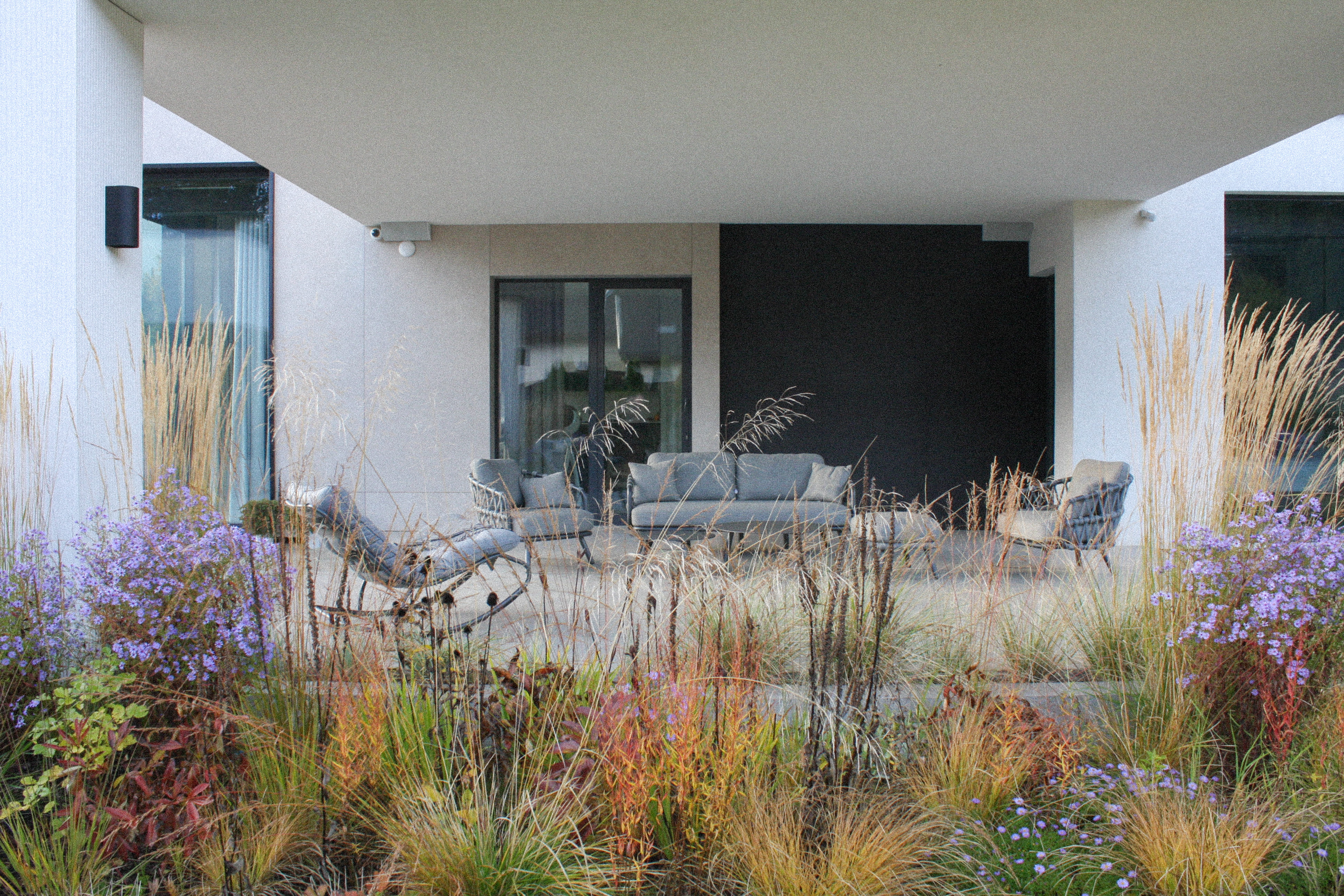 Газон в таких планировках идет вторым слоем и не заметен сквозь растения. Функция и эстетика в одном флаконе.